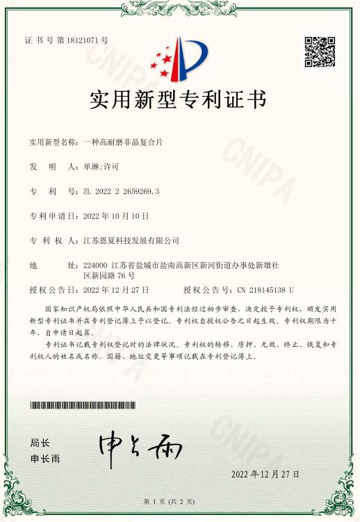 歡迎來到江蘇恩夏科技發(fā)展有限公司官網(wǎng)!主營一種高耐磨非晶復(fù)合片 - 噴嘴,坩堝,料筒,高溫導(dǎo)流管,防彈磚塊,防彈片等